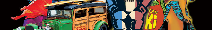 American TIKI is a cocktail show attraction for the Honolulu tourist. With two shows a night that blossom into a late nightclub, American TIKI is a fast moving, laugh happy, song and dance spectacular that celebrates the many generations of the American summer vacation. American TIKI surfs at 100 minutes including an intermission for a cocktail and Pu Pu platter pit stop. Aimed at the American and English-speaking Waikiki visitor, American TIKI throws a wide wink to our many Japanese guests. The decorated showroom can be as elaborate and fun as Disney's Enchanted Tiki Room. Attached is an all-hour gift shop and museum attraction. This fun-lovin' exhibit features the artwork and sculpture of the contemporary Kustom Kulture art movement of surf, hot rods, burlesque, motorcycles and street art. American TIKI and the Kustom Kulture Kolab museum are destined for a larger Las Vegas venue. As a travelling attraction, on an annual circuit,American TIKI and the Kustom Kulture Kolab is a circus for the fun lovin' wildcat and kitten. A stage show, concerts, great food and carnival attractions are presented over a long weekend.