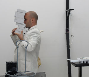 Last year, at the first annual Perform! Now!, Lucas Murgida of the Charlie James Gallery stole the fest with dazzling reviews in the best publications. This year, he overwhelmed any expectations. As a continuation of his ‘future forecasting’ work, his piece “The Oracle” gets rid of the Middle Man (a fortuneteller, a Priest or a shaman) and puts you in touch with your Higher Power and Greater Self.